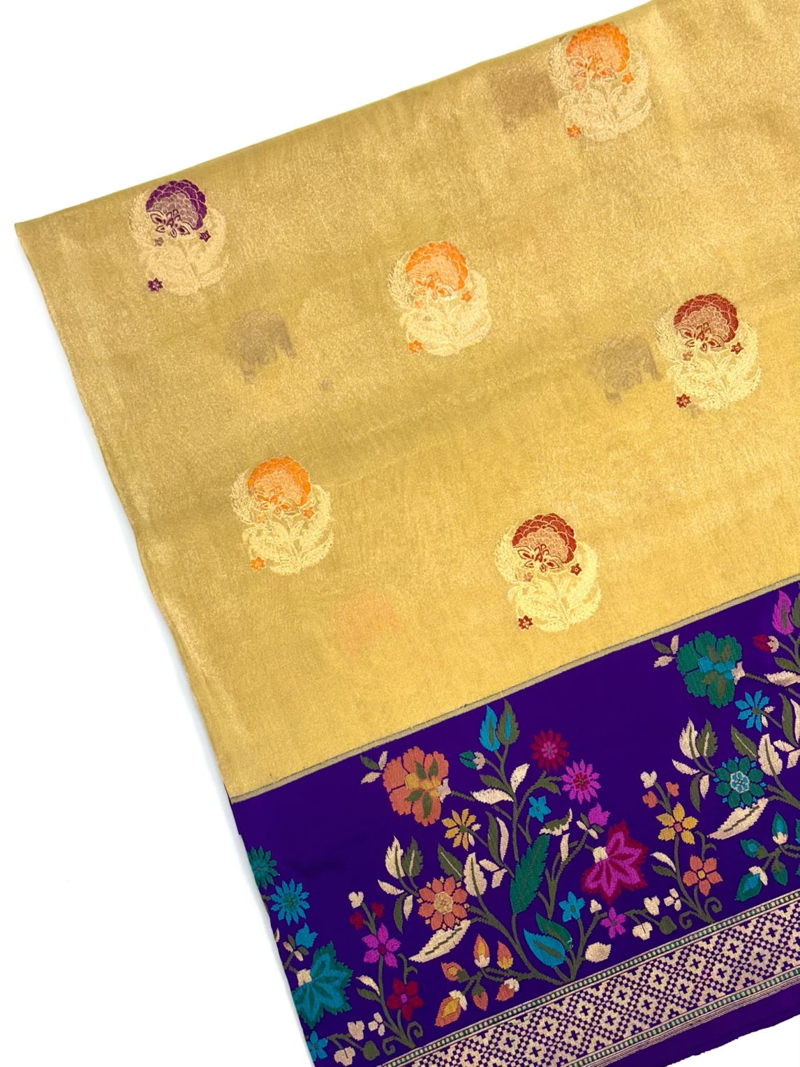 Yellow Pure Mulberry Katan Silk Handloom Banarasi Saree
