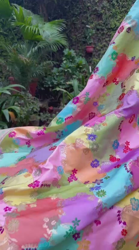 Rose Gold Pure Kora Tissue Silk Handwoven Banarasi Saree
