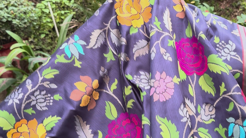 Grey Pure Mulberry Katan Silk Handwoven Banarasi Saree |Rangkaat|