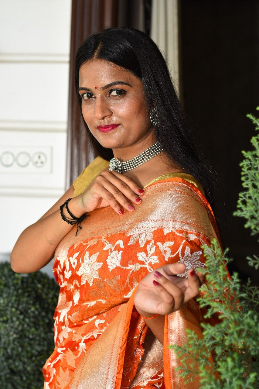 Red Pure Mulberry Kora Silk Handwoven Banarasi Saree